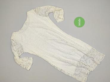 Sukienka koronkowa damska, kremowa/ecru, rozmiar S. - Fason: prosta, lekko dopasowana, długość przed kolano - Rękaw: krótki z dekoracyjną koronkową końcówką - Dekolt: okrągły - Tkanina zewnętrzna:...