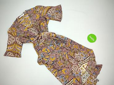 Sukienka damska w kwiaty, rozmiar S/M - Fason: lekka, zwiewna, z falbankami przy rękawach i na dole; delikatnie taliowana, z kopertowym/zakładanym dołem tworzącym subtelne marszczenia - Wzór: gęst...
