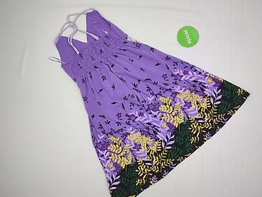 Sukienka damska Miss H., rozmiar 42 - Fason: bez rękawów, dekolt kopertowy V, odcięcie w talii z delikatnymi marszczeniami, rozszerzany dół. - Wzór/kolor: intensywny fiolet z zielono‑różowym, rośl...