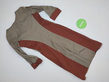Sukienka damska midi, dwukolorowa (beż + ciemny brąz), rozmiar 46. - Krój: ołówkowy, lekko dopasowany, z panelem kontrastowym wysmuklającym sylwetkę - Rękaw: 3/4 - Dekolt: łagodnie zaokrąglony - Z...