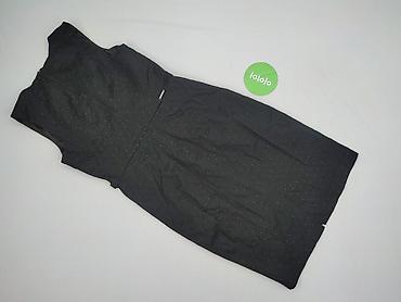Sukienka damska bez rękawów, ołówkowa, w kolorze czarnym z delikatną, drobną fakturą materiału (lekki połysk). Prosty, minimalistyczny krój z okrągłym dekoltem, długość przed kolano/za kolano (w za...