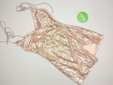 Sukienka damska mini z cekinami, rozmiar S. - Krój: kopertowa góra z głębokim dekoltem V, zaznaczona talia, rozkloszowany dół. - Rękawy: długie, lekko bufiaste na ramionach. - Zapięcie: kryty ...