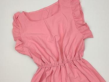 Sukienka SHEIN – różowa, damska - Model: midi z krótszym rękawem - Kolor: intensywny fuksja/róż - Rozmiar na metce: M (EU 38, US 6) - Fason: lekko rozkloszowany dół, odcięcie w talii - Dekolt: w k...