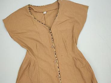 Sukienka damska, oversize, midi, w kolorze karmelowym/camel - Krój: luźny, z odcięciem w pasie i marszczonym, rozkloszowanym dołem - Zapięcie: rząd guzików z przodu na całej długości - Dekolt: bez...