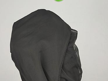Czarna sukienka damska z tiulowymi wstawkami i rękawami - Krój: prosta, mini - Dekolt: okrągły z ozdobną lamówką i metalowymi oczkami - Góra: półtransparentna siateczka/tiul - Rękawy: długie, z ti...