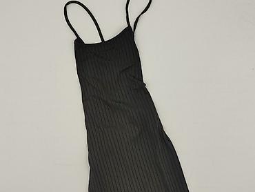 Sukienka damska midi na ramiączkach, czarna, prążkowana