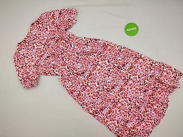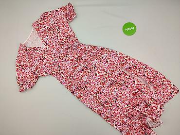 Sukienka damska w kwiaty, długość midi. - Zwiewny, lekko pomarszczony materiał z dużym, wielobarwnym nadrukiem roślinnym (odcienie zieleni, turkusu, fioletu, żółci i różu na jasnym tle). - Dekolt ...