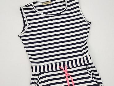 Sukienka damska AMISU - Model: tubowa, bez ramiączek (hiszpanka/biust opadający), wiązana w pasie - Wzór: biało-niebieskie, wąskie paski w stylu marynistycznym - Rozmiar z metki: 38 - Materiał: mi...