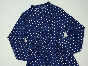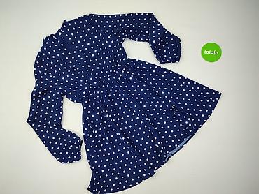 Sukienka damska w grochy, rozmiar L. - Kolor: granatowy z białymi, nieregularnymi kropkami - Krój: kopertowy look z dekoltem V, taliowana, dół z zakładką (efekt wrap) - Rękaw: do łokcia - Długość:...