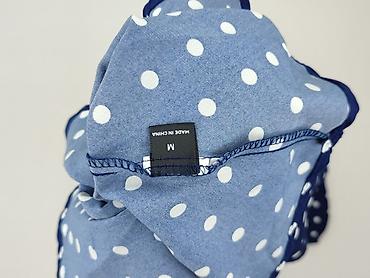 Sukienka damska w groszki, rozmiar M. - Kolor: biel z granatowymi kropkami - Fason: luźna, prosta, długość do kolan - Dekolt/wykończenie: szeroki karczek z marszczeniem, umożliwia noszenie na lub ...
