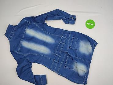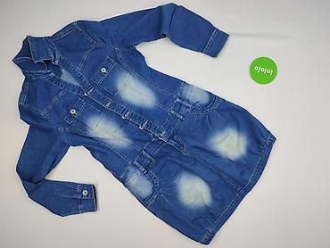 Sukienka damska jeansowa z falbaną - Fason: prosta góra zapinana na guziki z przodu, od linii bioder szeroka, marszczona falbana - Długość: mini/przed kolano - Rękaw: długi, mankiety zapinane na g...