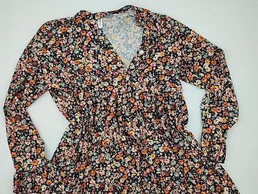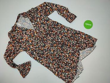 - Wzór: gęsty, wielobarwny nadruk kwiatowy na czarnym tle (odcienie pomarańczu, różu, żółci, błękitu, bieli)