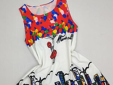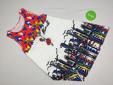 Sukienka damska bez rękawów, rozmiar M, z efektownym, kolorowym nadrukiem.