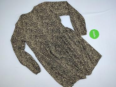 Sukienka damska z długim rękawem, rozmiar M. - Krój: kopertowy/dekolt w serek, lekko marszczona w talii, dół z falbaną - Długość: mini/przed kolano - Wzór: czarno-oliwkowy, abstrakcyjny przypomina...