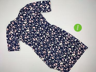 Sukienka damska, rozmiar M - Fason: prosta, lekko dopasowana, z długim rękawem - Dekolt: okrągły z czarną lamówką - Wzór: kwiatowy – duże, pastelowe róże na granatowym tle - Materiał: 96% poliester...