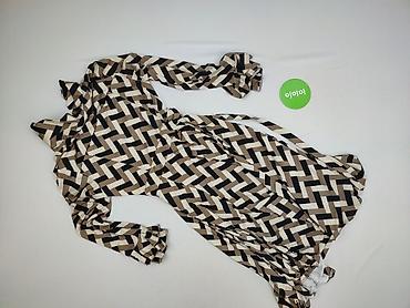 Sukienka damska, rozmiar M - Krój: kopertowy z dekoltem w serek, długa rękaw 3/4–pełny (na zdjęciach widać różne ułożenie rękawa) - Długość: midi do kolan/za kolano - Wzór: geometryczny, czarno‑bi...