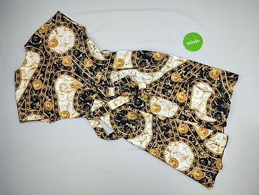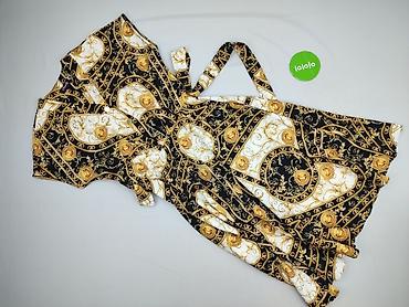 Sukienka kopertowa z paskiem w talii, rozmiar S. - Fason: wiązana w pasie, lekko rozkloszowany dół, długie bufiaste rękawy zakończone gumką. - Wzór: barokowe ornamenty w kolorach czerni, bieli i ...