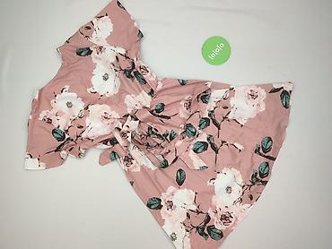 Sukienka damska w kwiaty, rozmiar S - Fason: kopertowy z wiązaniem w talii - Długość: mini/przed kolano, rozkloszowany dół - Rękawy: długie, lekko bufiaste z gumką przy mankiecie - Dekolt: w kszta...