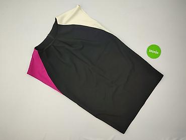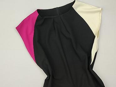 Sukienka damska bez rękawów, czarno‑biała, rozmiar S. - Krój: dopasowana góra z geometrycznymi, kontrastowymi wstawkami w kolorze białym; dół ołówkowy do kolan. - Dekolt: okrągły. - Zapięcie: dług...