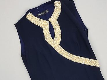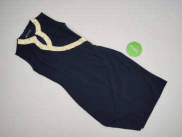 Sukienka Orsay, elegancka, granatowa. - Rozmiar: EU 34 (metka “SIZE 34”). - Fason: ołówkowy, bez rękawów, długość do kolan. - Dekolt: półokrągły, ozdobny kołnierz z aplikacją z perełek. - Zapięcie...