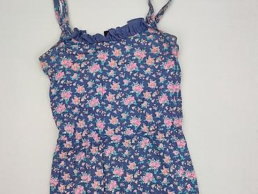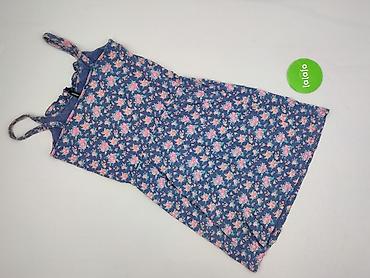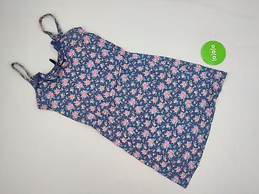 Sukienka damska na ramiączkach, w kwiaty - Rozmiar: M (metka) - Materiał: 100% poliester - Kolor: granatowy w kwiatowy wzór w odcieniach ecru, łososiowym i jasnoniebieskim - Fason: lekko roz...Długość: