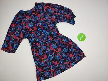Sukienka damska z krótkim rękawem, rozmiar M - Krój: dopasowana góra, od pasa lekko rozkloszowany dół z zakładkami - Dekolt: zaokrąglony (łódka/scoop) - Długość: do kolan (mini/średnia – w zależno...