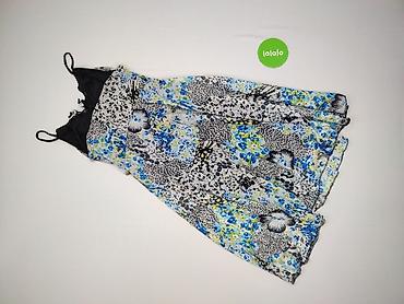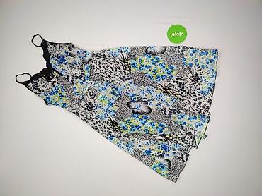 Sukienka damska na ramiączkach, rozmiar L. - Fason: luźny, lekko rozkloszowany dół z doszytą falbaną - Ramiączka wiązane na kokardki, możliwość regulacji długości - Dekolt: półokrągły, marszczony ...