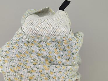 - Wzór: drobne kwiaty w odcieniach żółci, zieleni i bieli na jasnym, prążkowanym tle