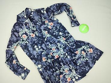 Sukienka damska w kwiaty, mini - Fason: prosta mini z delikatnie rozszerzanym dołem - Rękawy: długie, zakończone marszczeniem przy mankietach - Dekolt/stójka: niewysoka stójka z guzikiem z tyłu; n...Długość: