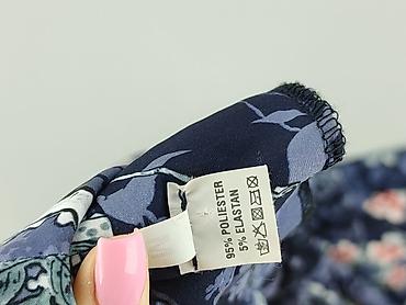 Sukienka damska w kwiaty, rozmiar 40 - Fason: lekko rozkloszowana, z krótkim rękawem - Dekolt: okrągły - Print: gęsty, kwiatowy na granatowym tle (odcienie niebieskiego, ecru i czerwieni) - Materi...