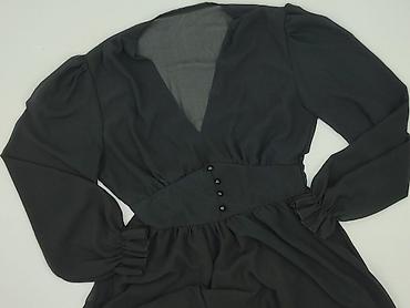 Sukienka damska New Style – mini, czarna, szyfonowa siateczka z połyskiem - Marka: New Style - Fason: dopasowana mini - Rękaw: długi, lekko bufowany na ramionach - Dekolt: głęboki V z przodu - Mat...