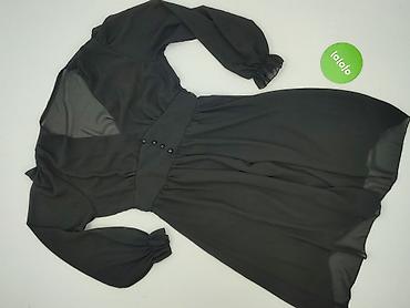 Czarna sukienka damska, wyprodukowana we Włoszech. - Rozmiar: S (z metki) - Materiał: 100% poliester - Fason: dopasowany, podkreślający sylwetkę - Długość: mini/przed kolano - Rękaw: 3/4 - De...