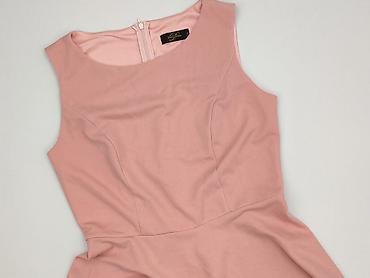 Sukienka damska Sukienkowo, rozmiar M - Kolor: pudrowy róż - Fason: rozkloszowany dół z marszczeniami, dopasowana góra z dekoltem w kształcie litery V, bez rękawów - Zapięcie: kryty zamek z boku -...