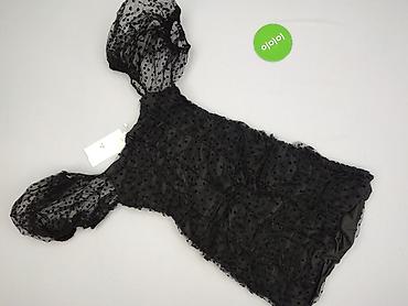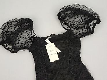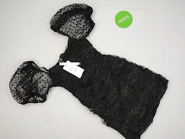 Sukienka damska, czarna, rozmiar 38. - Fason: dopasowana, długość mini/za udo - Góra: półtransparentna siateczka w drobne kropki, dekolt w serek, krótkie bufiaste rękawy - Wiązanie z tyłu przy kark...