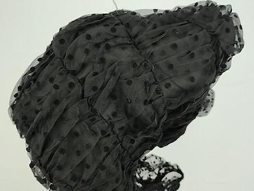 Sukienka damska czarna z tiulowymi rękawami w grochy - Fason: prosta, mini. - Góra i rękawy z półprzezroczystego tiulu w czarne kropki; falbanka przy stójce/kołnierzyku, wiązania przy mankietach. ...