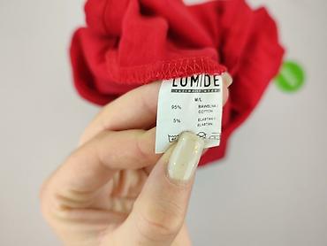 Sukienka LUMIDE – czerwona, damska - Fason: prosta, dopasowana, z okrągłym dekoltem - Rękawy: 3/4 - Długość: za kolano (midi) - Rozmiar z metki: M/L - Skład: 95% bawełna, 5% elastan – miękka, elas...Długość: