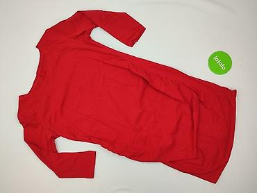 Czerwona sukienka damska L/XL - Fason: dopasowana w talii, efektowne marszczenie/ściągnięcie po środku, które podkreśla sylwetkę i nadaje objętości dołowi. - Rękaw: długi. - Dekolt: okrągły. - Tka...