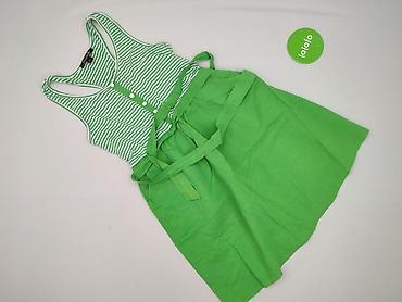 Sukienka damska marki J. Cavallo w rozmiarze M/L, charakteryzująca się zielonym kolorem i wzorem w paski na górnej części. Góra sukienki ma fason bokserki oraz zapięcie na guziki, co dodaje jej sportowego charakteru. Dół sukienki jest jednolicie zielony, a w pasie znajduje się wiązanie, które pozwala na dopasowanie fasonu do sylwetki. Wykonana z mieszanki bawełny, zapewnia komfort noszenia.