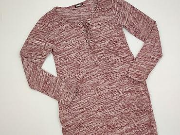Sukienka swetrowa damska, bordowa - Fason: prosta, swobodna, dzianinowa sukienka swetrowa - Długość: za kolano/około midi (na zdjęciach pełna sylwetka sukienki) - Rękaw: krótki do łokcia z prążkow...