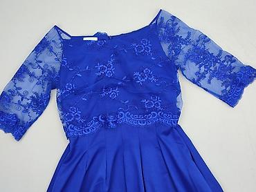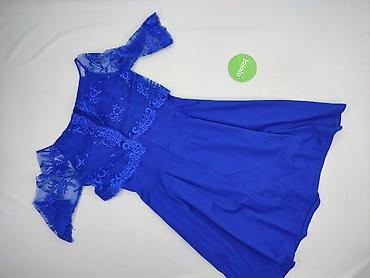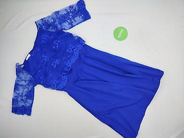 Sukienka koktajlowa CWK, rozmiar 46, w odcieniu kobaltu/chabru. - Fason: ołówkowy, długość midi - Dekolt: w kształcie litery V - Rękawy: 3/4, z koronką - Materiał: gładka tkanina z wstawkami z bog...