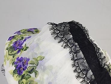 - Wzór: białe tło z romantycznym, fioletowo‑zielonym nadrukiem kwiatowym