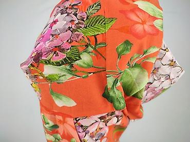 - Kolor: intensywny pomarańcz z wielobarwnym, kwiatowym nadrukiem (hortensje i liście)