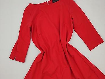 Czerwona sukienka damska Mery’s Fashion - Rozmiar: S (z metki) - Krój: dopasowana góra z zaznaczoną talią, rozkloszowany dół z kontrafałdami - Rękawy: krótkie - Dekolt: w kształcie serca/V (z przo...