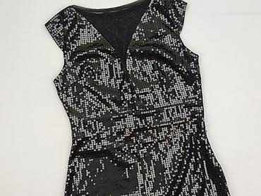Sukienka damska Promod, rozmiar S - Fason: dopasowana, bez rękawów, długość przed kolano - Dekolt: w kształcie litery V z przodu, gładki tył - Kolor: czarny z przodu pokryty srebrnymi, błyszczącym...