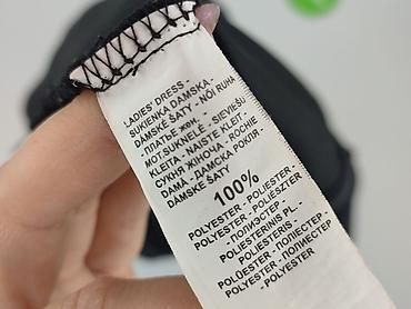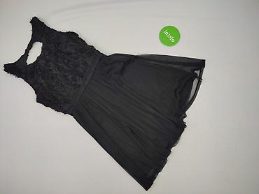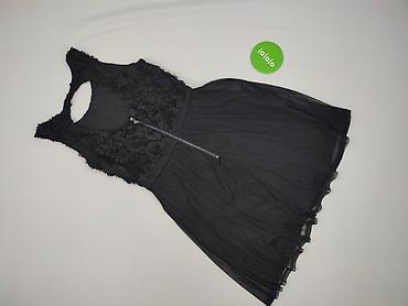 Czarna sukienka damska, rozmiar 38 - Fason: dopasowany, długość midi/przed kolano - Dekolt: okrągły - Rękaw: krótki (cap sleeve) - Tkanina: 100% poliester (metka na zdjęciu), delikatnie elastyczna...