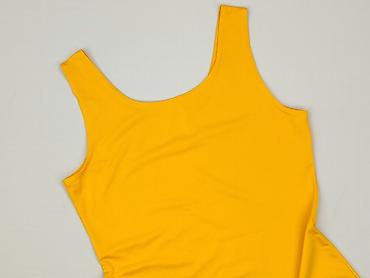 Sukienka plażowa/letnia dla kobiety, rozmiar S. Model w kolorze pastelowej żółci, wykonany z lekkiej, elastycznej dzianiny: 70% bawełna, 20% poliester, 10% spandex. Krój bez ramiączek z odkrytymi r...
