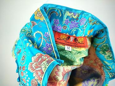 - Kolorystyka: turkusowa baza z wielobarwnymi kwiatami (złoto, fiolet, zieleń, czerwień, żółć) i finezyjnymi ornamentami.