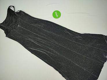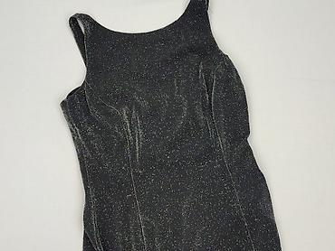 Sukienka damska wieczorowa, czarna, z połyskującymi aplikacjami - Krój: rozkloszowana spódnica, góra z dekoltem w kształcie litery V - Ramiączka/szerokie szelki, marszczona góra - Góra pokryta bły...