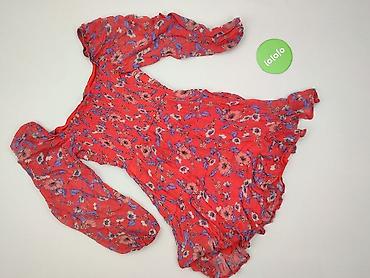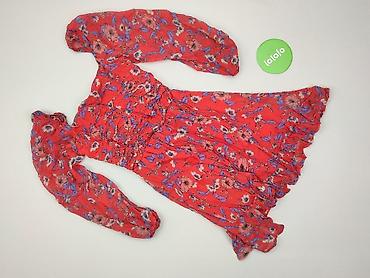 Sukienka damska, czerwona, z ażurowym kwiatowym wzorem. - Krój: kopertowy dekolt V, delikatnie odcinana w talii gumką, lekko rozkloszowany dół. - Rękawy: krótkie, z falbanką. - Długość: do kolan l...
