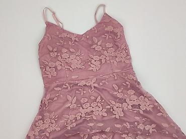 Sukienka damska, rozmiar S, kolor pudrowy róż. - Fason: bez rękawów, góra z półprzezroczystej siateczki, zabudowane plecy z wąskim paskiem pośrodku; talia elastyczna; dół rozkloszowany, plisowany....